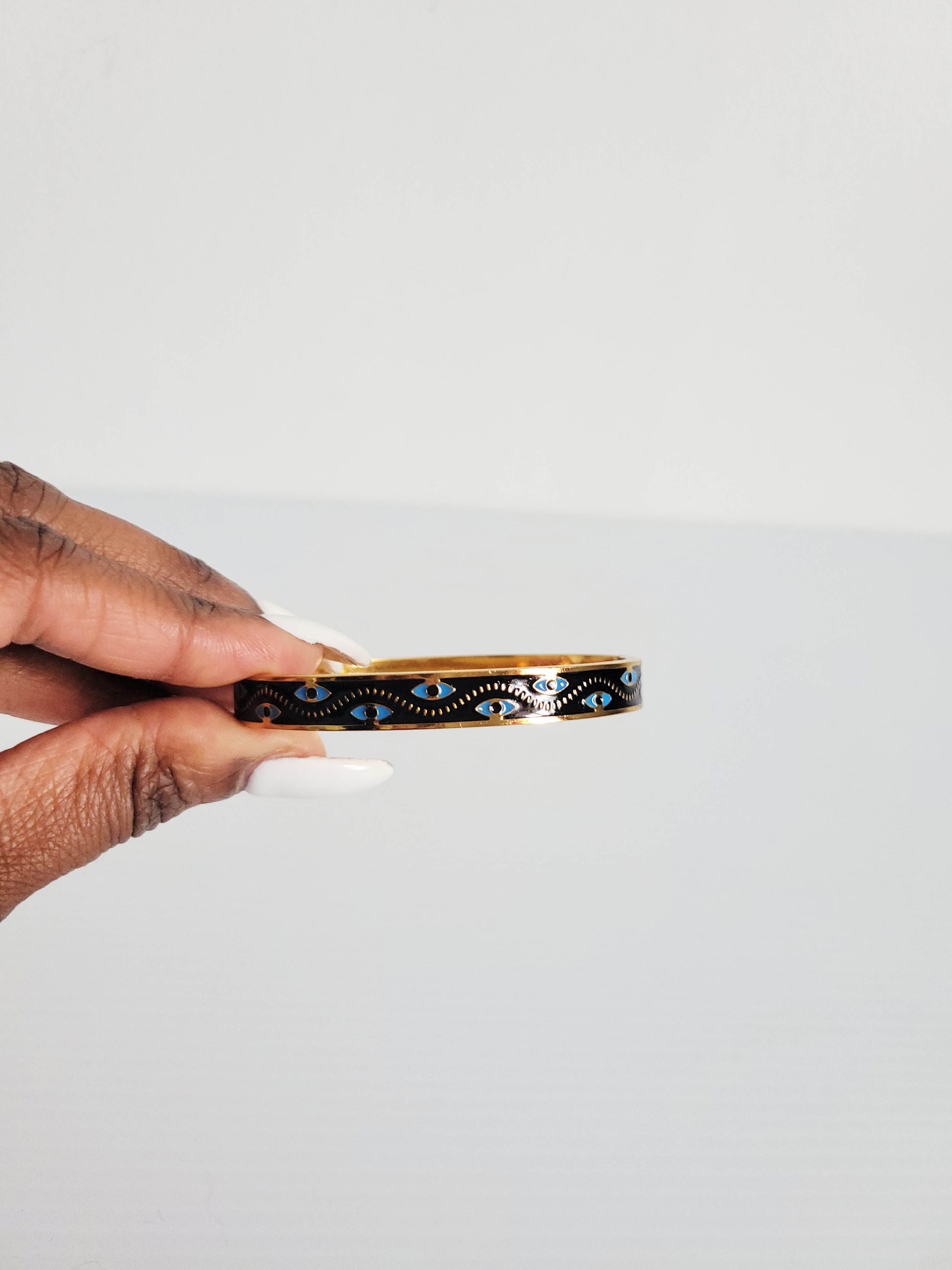 Black Evil Eye Gold Bangle