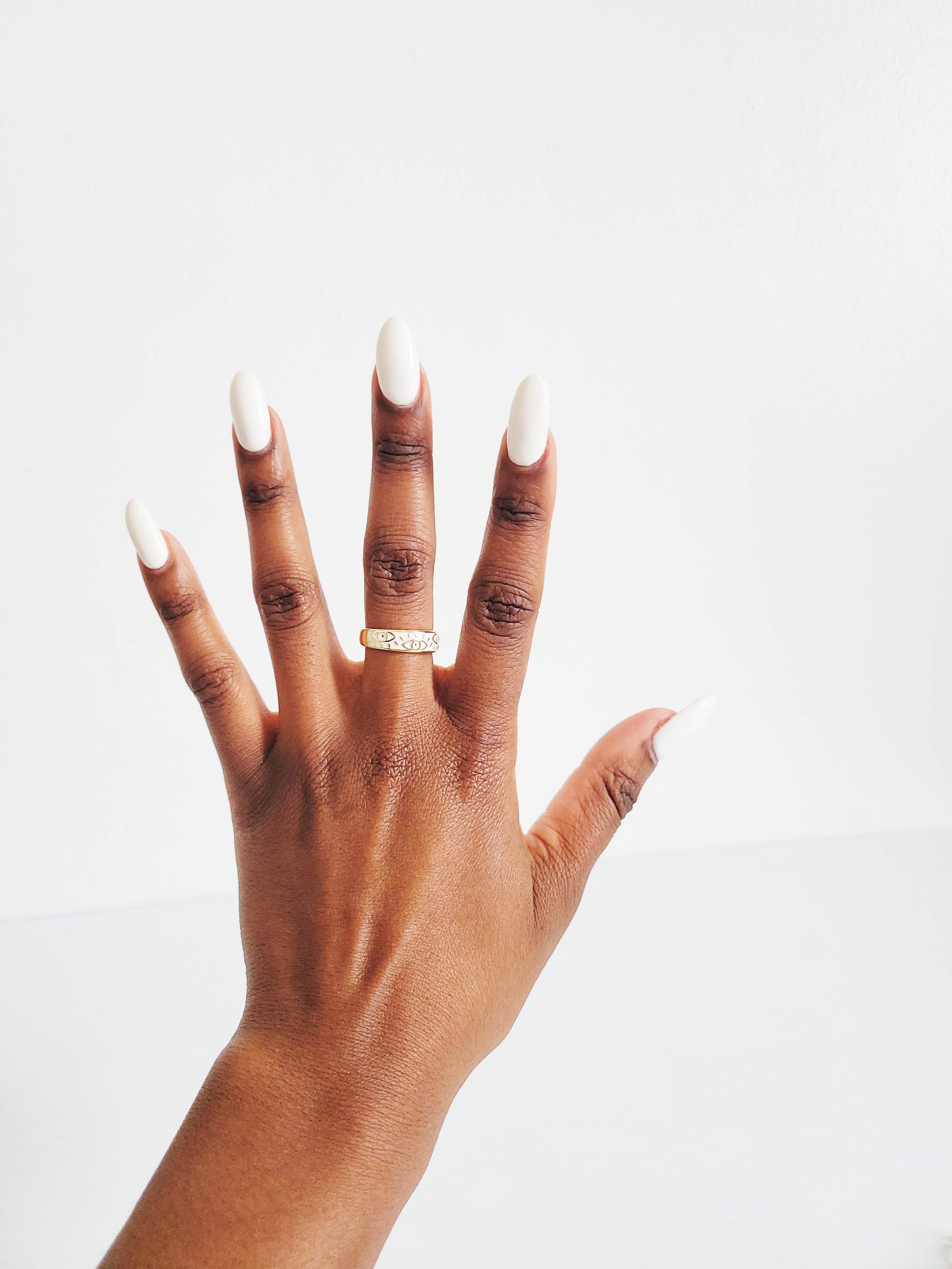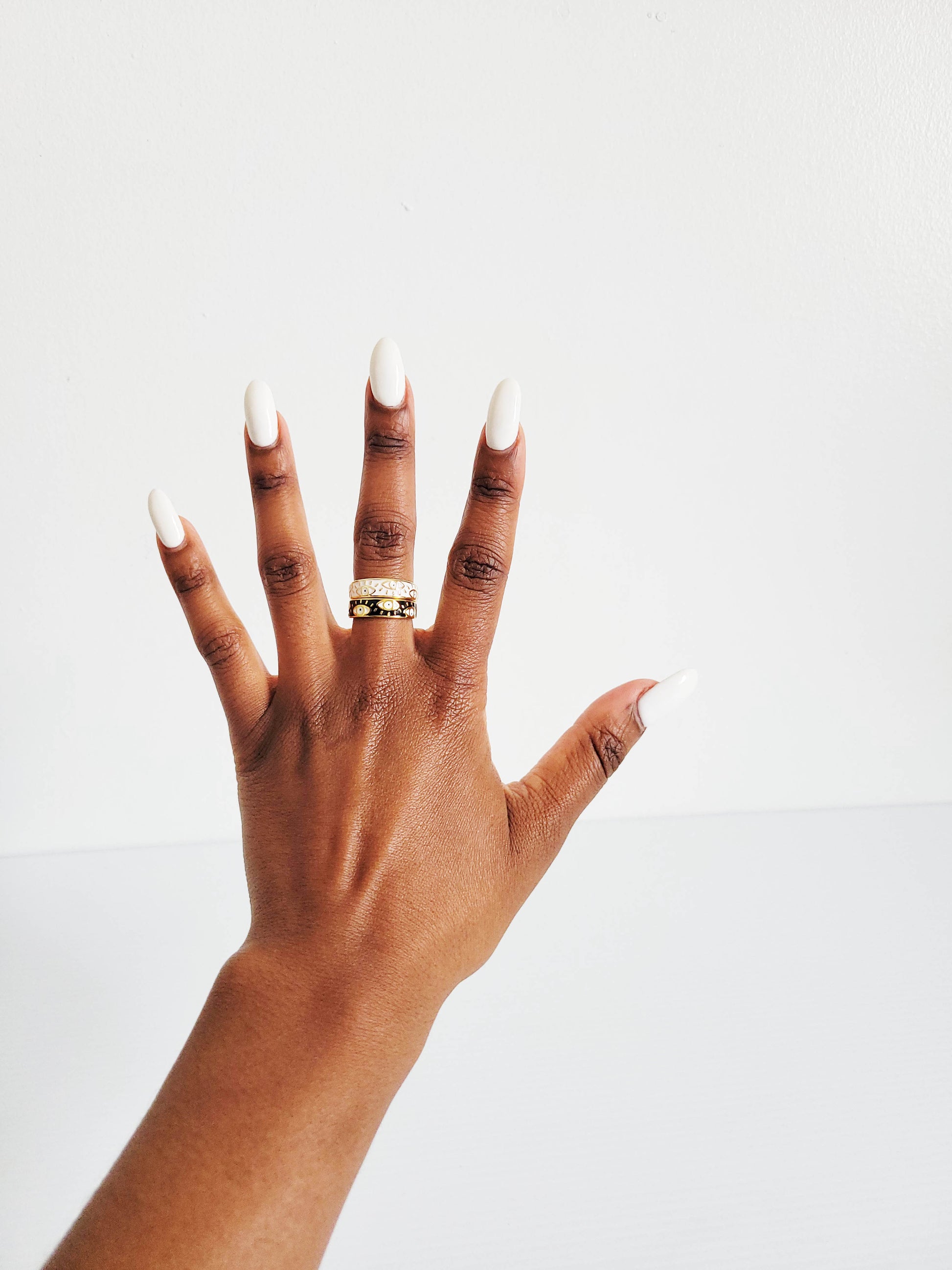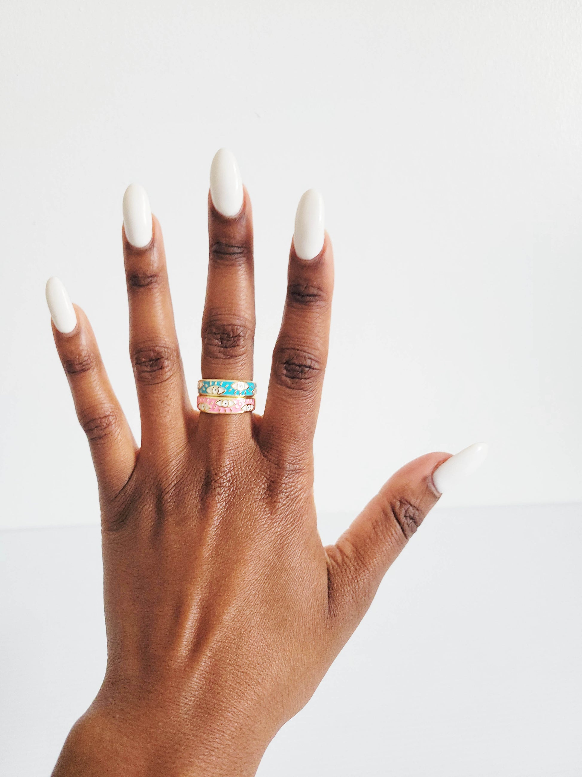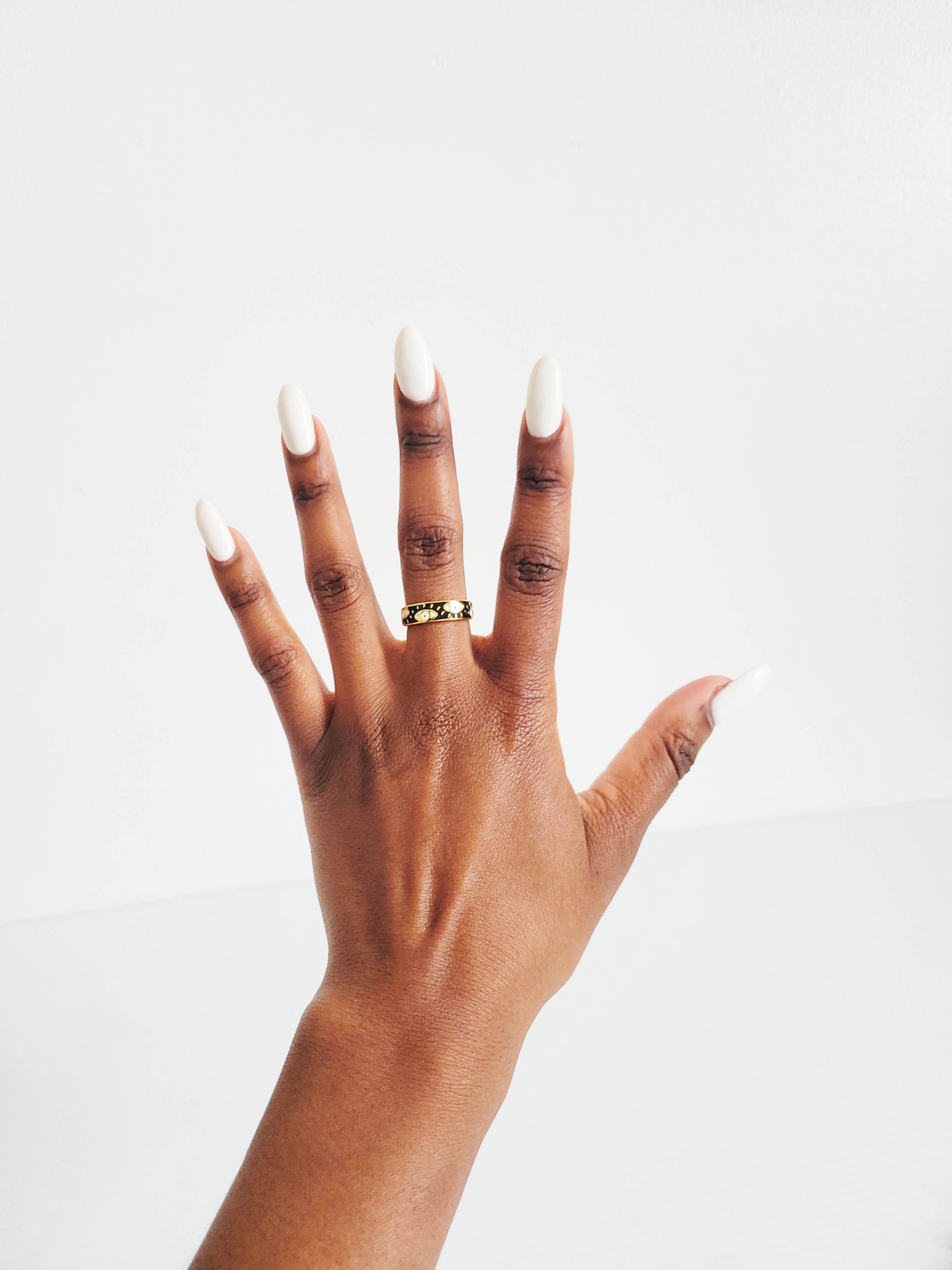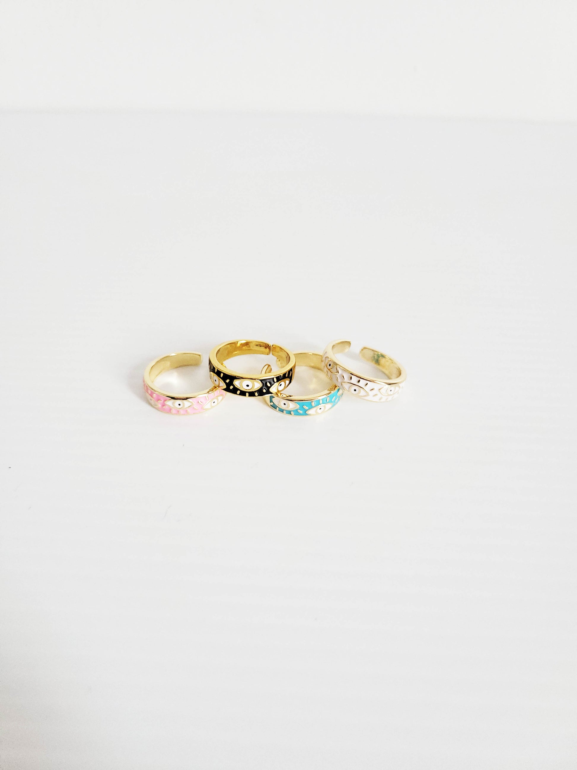 A chic addition to your collection. The sophisticated evil eye motif on one side is sleek, chic and beautiful.