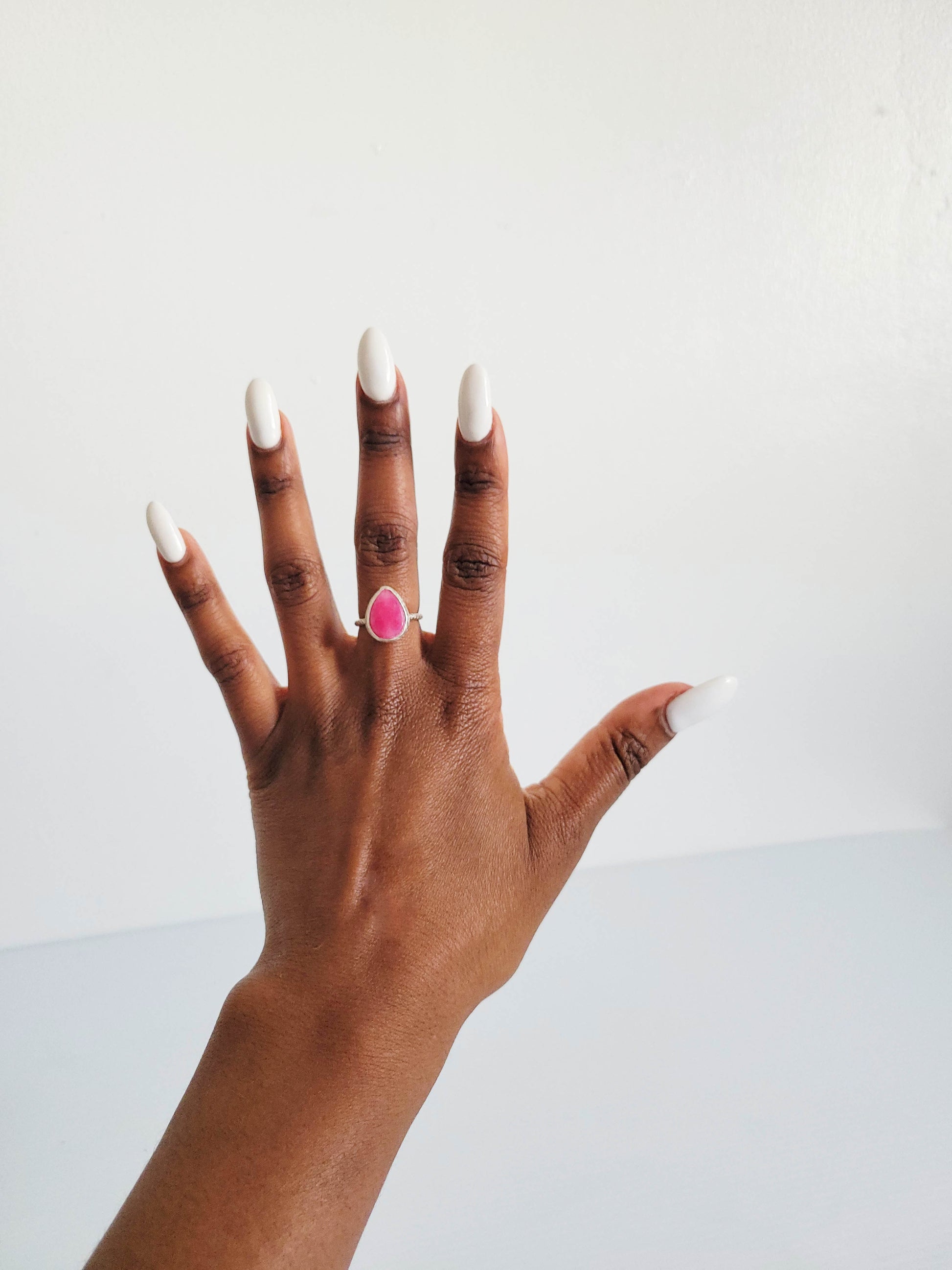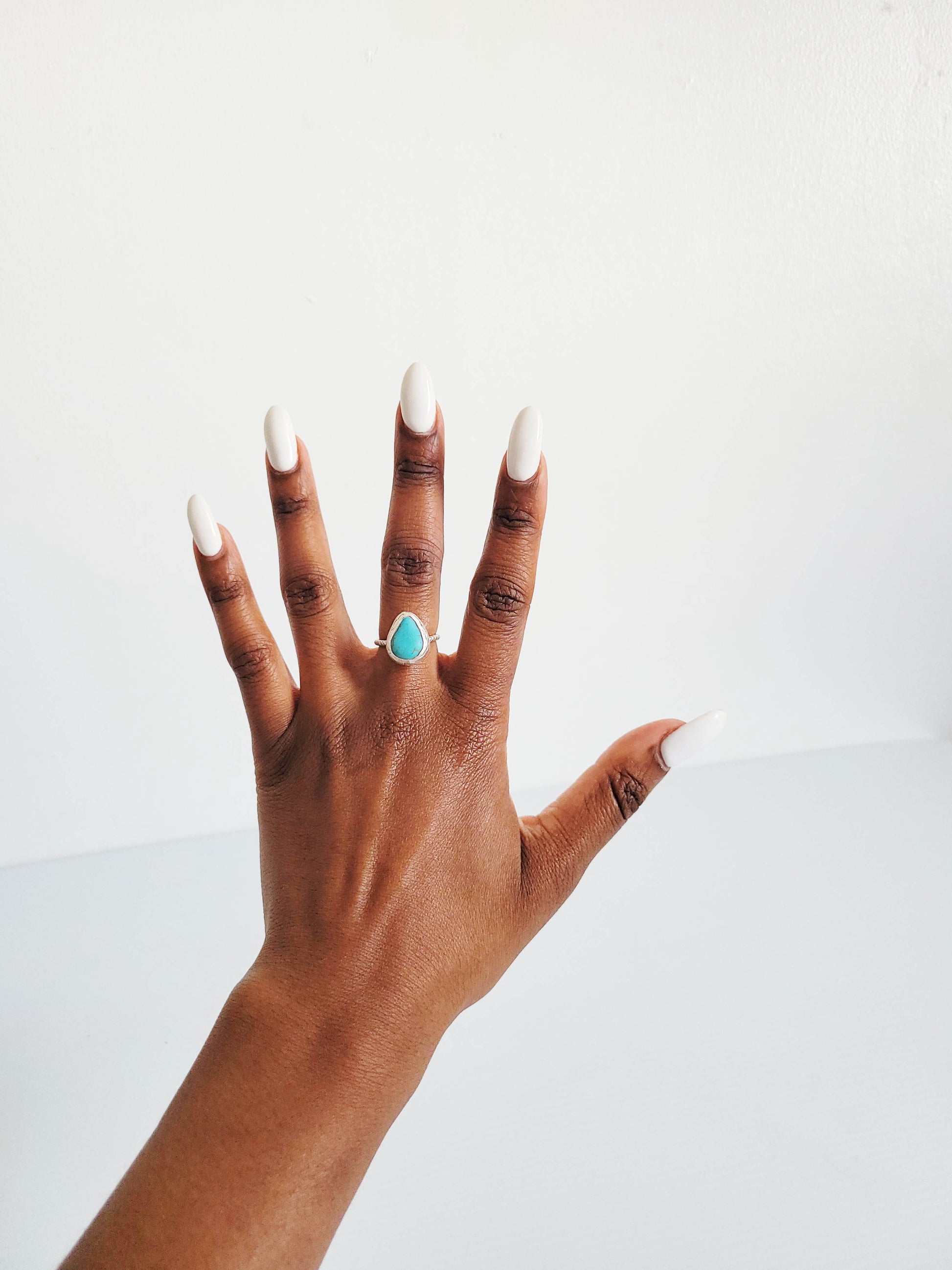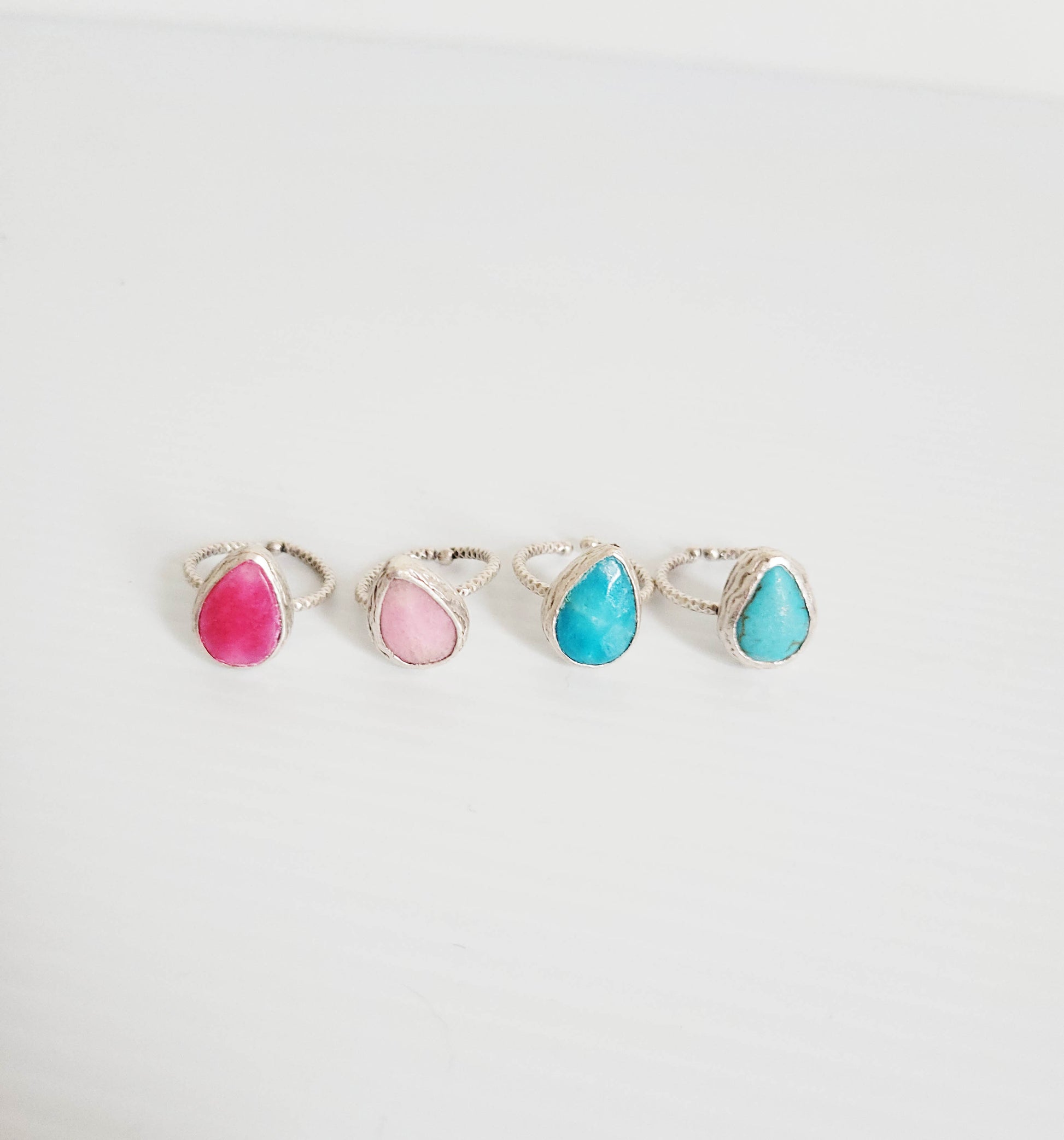Beautiful silver plated ring with a real (turquoise, rose quartz etc) oval shape gemstone. Handmade in Turkey, statement piece.