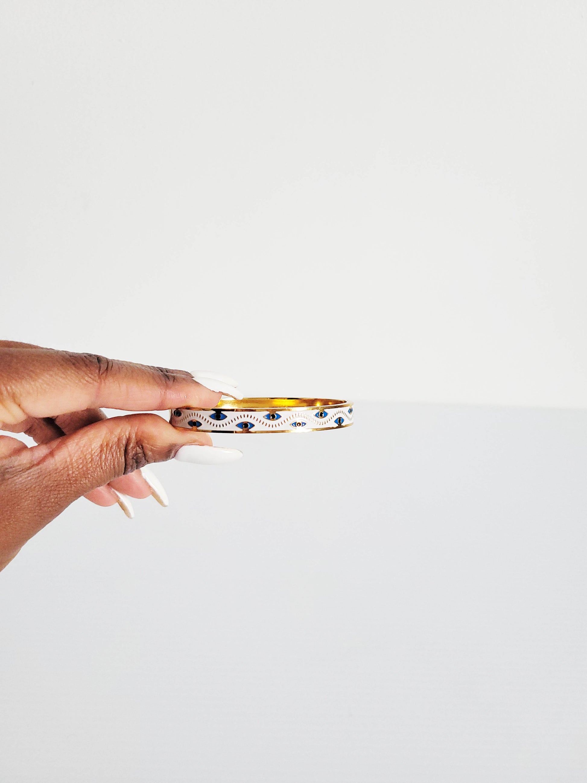 White Evil Eye Gold Bangle