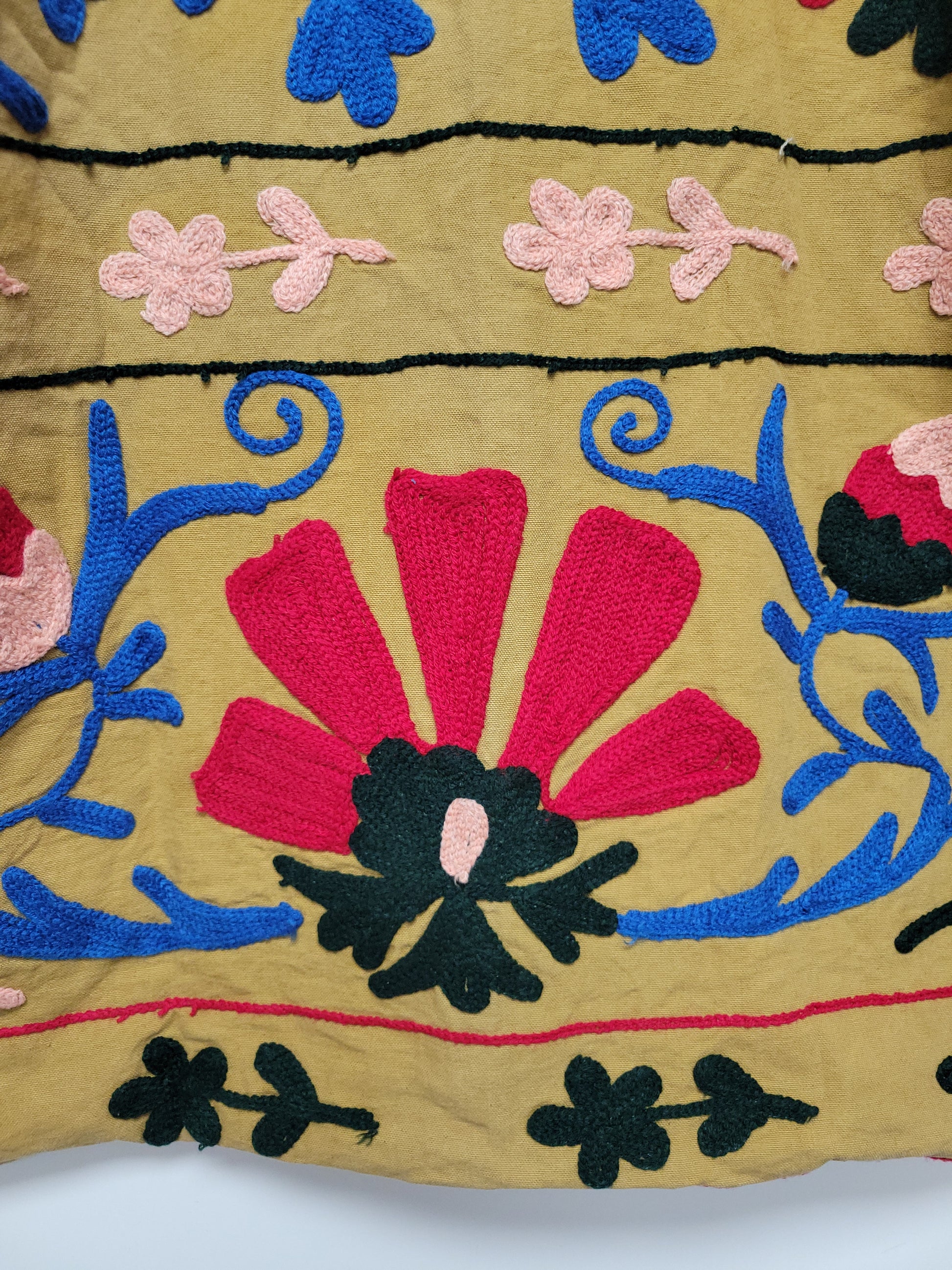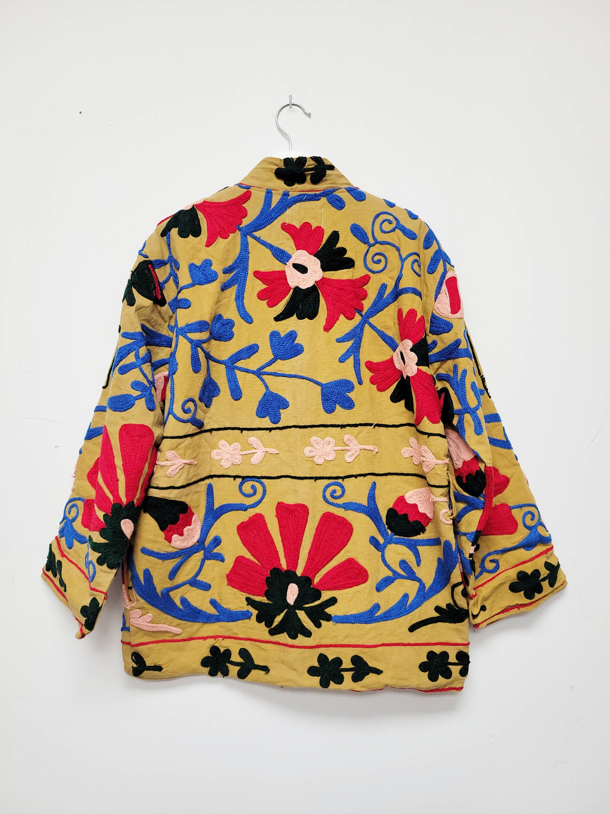 This stunning handmade suzani jacket is as unique as you are. Each piece is one of a kind, handmade andΒ hand embroidered from a traditional Indian textile called a suzani. I work directly with a small familyΒ owned business in Jaipur, India and design these amazing suzani jackets. High quality, cozy and one of aΒ kind.Β