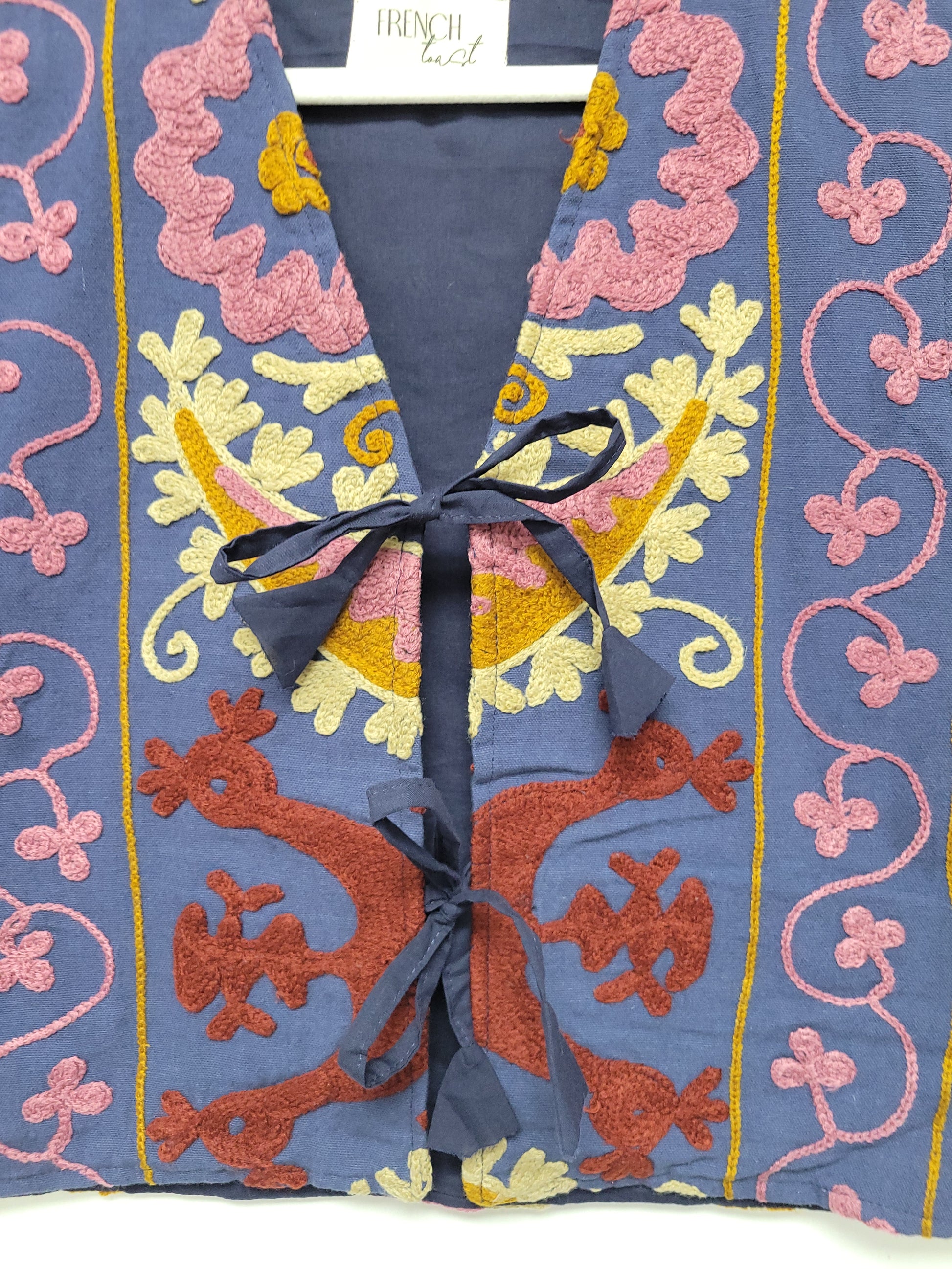 This stunning handmade suzani vest is as unique as you are. Each piece is one of a kind, handmade and hand embroidered from a traditional Indian textile called a suzani. I work directly with a small family owned business in Jaipur, India and design these amazing suzani jackets. High quality, cozy and one of a kind.Β