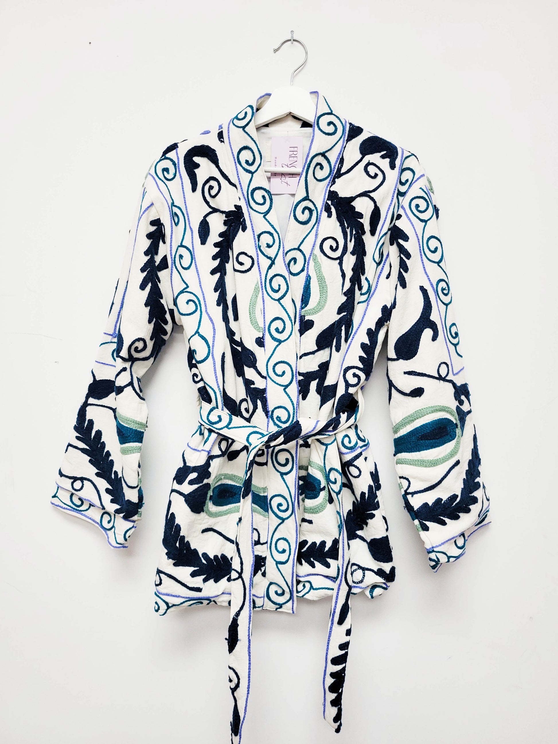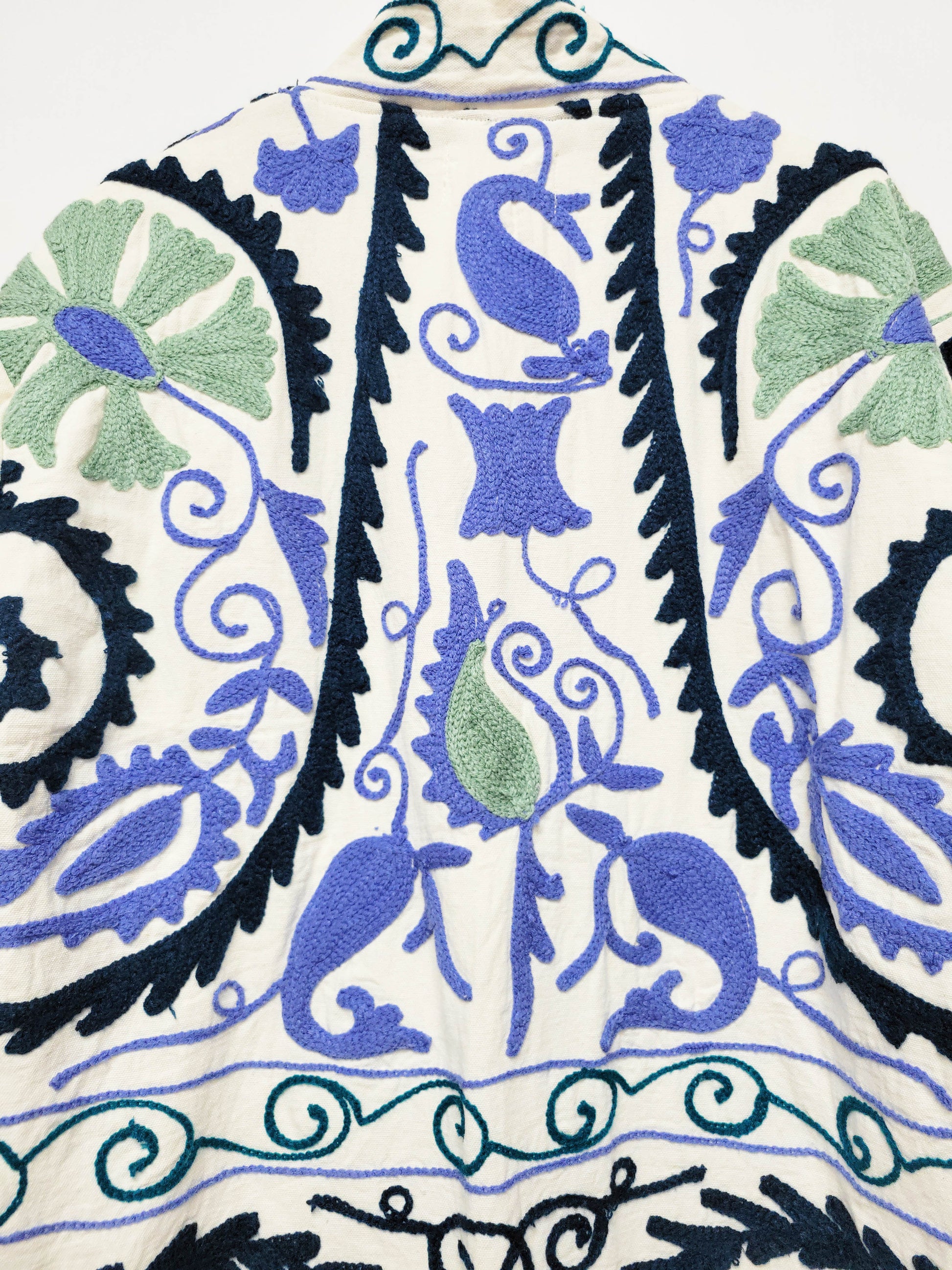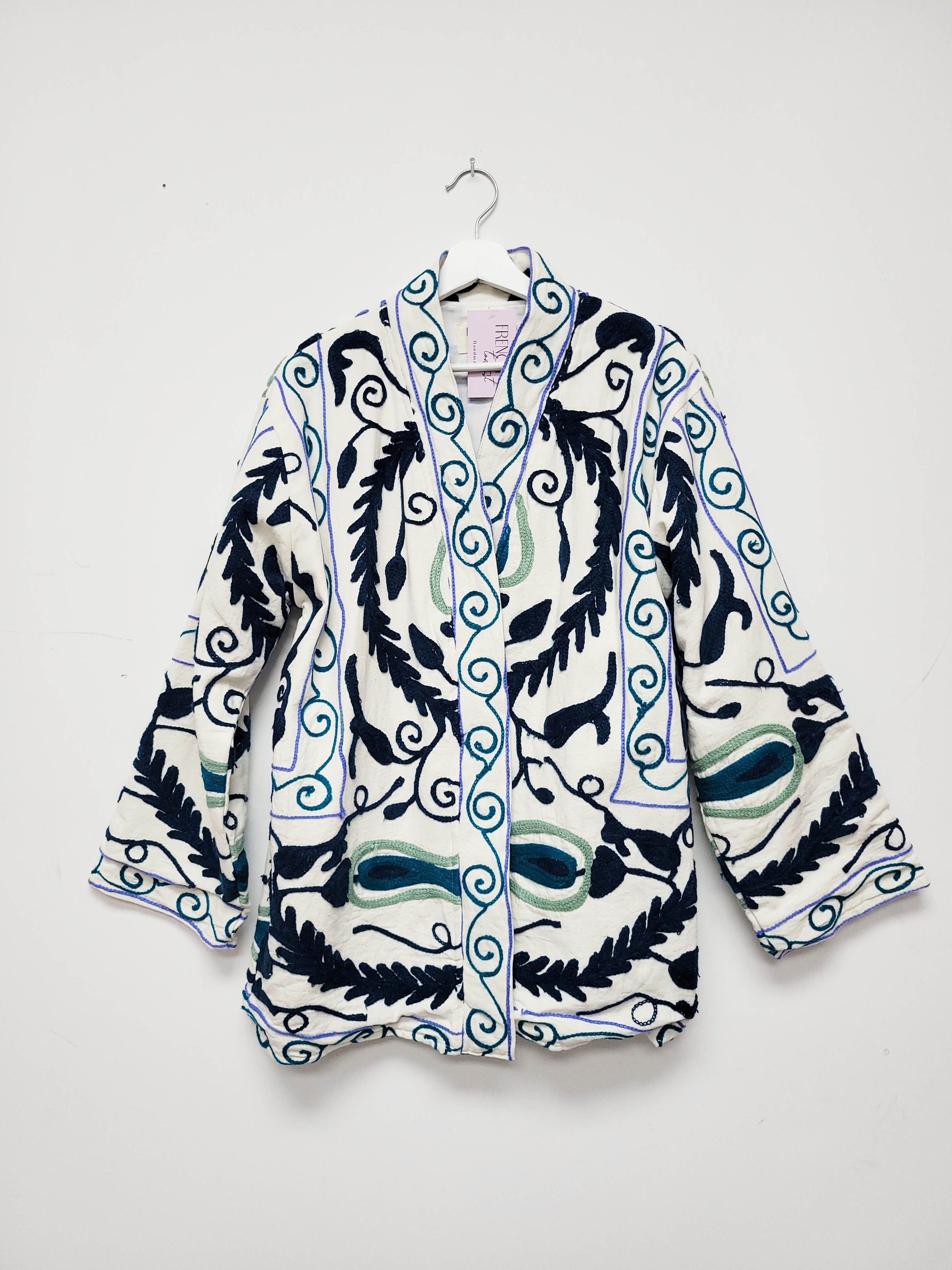 This stunning handmade suzani jacket is as unique as you are. Each piece is one of a kind, handmade andΒ hand embroidered from a traditional Indian textile called a suzani. I work directly with a small familyΒ owned business in Jaipur, India and design these amazing suzani jackets. High quality, cozy and one of aΒ kind.Β