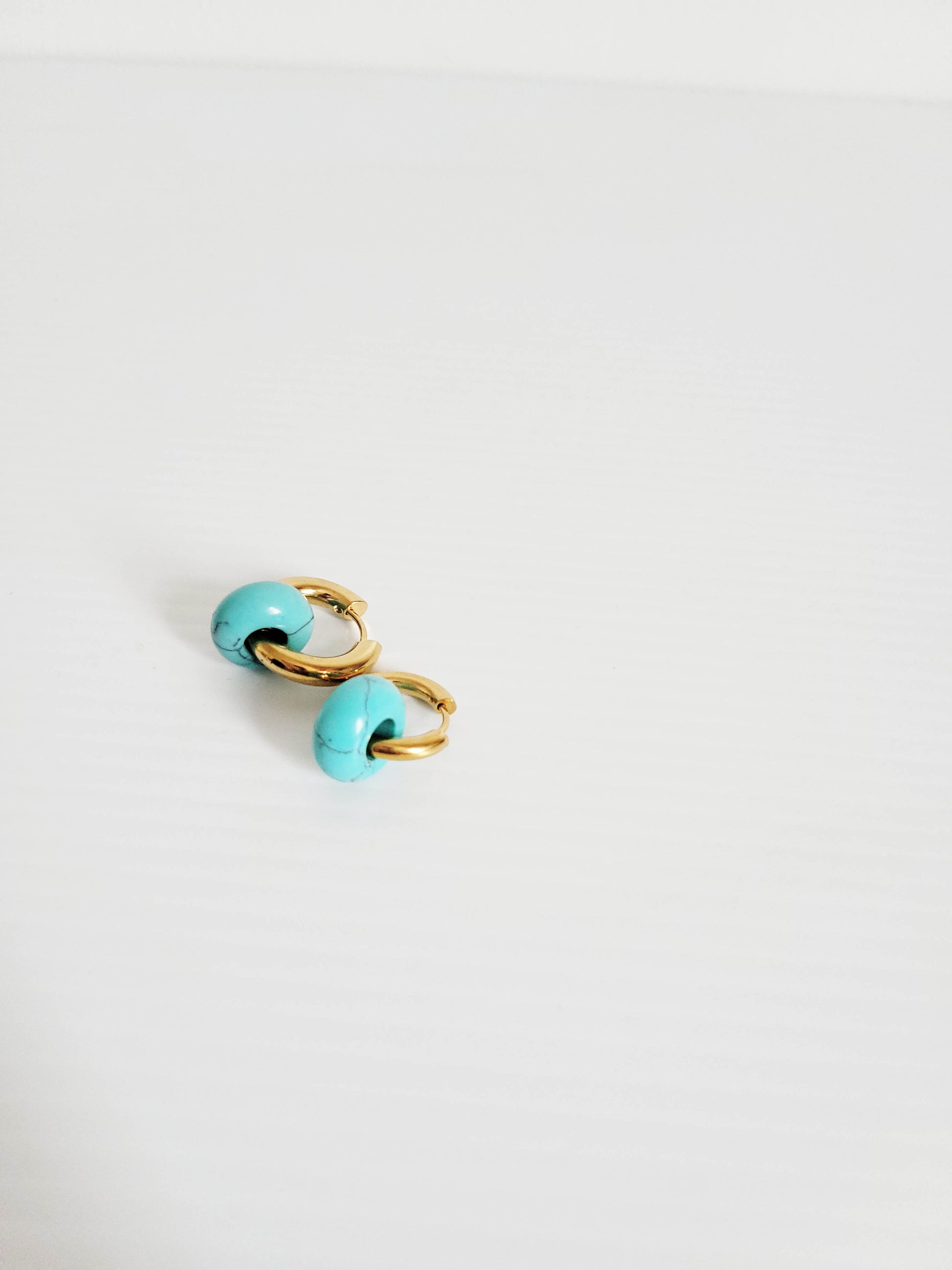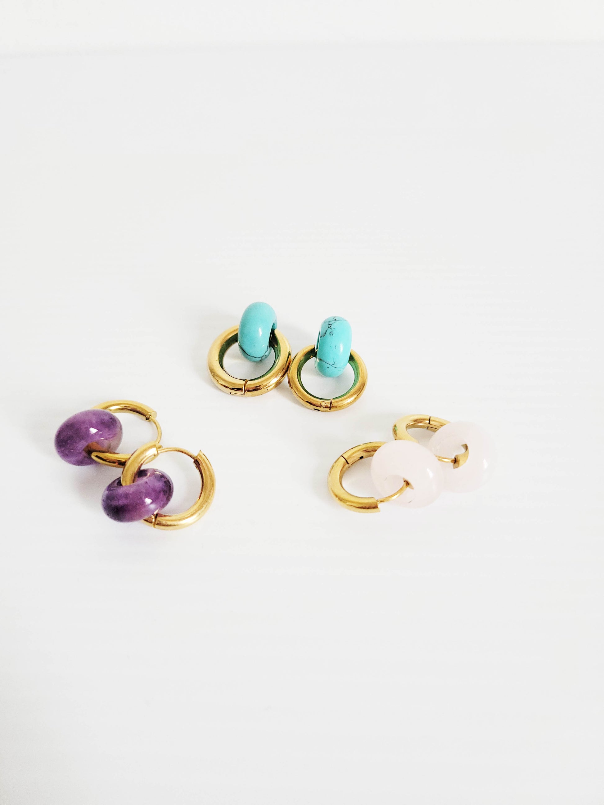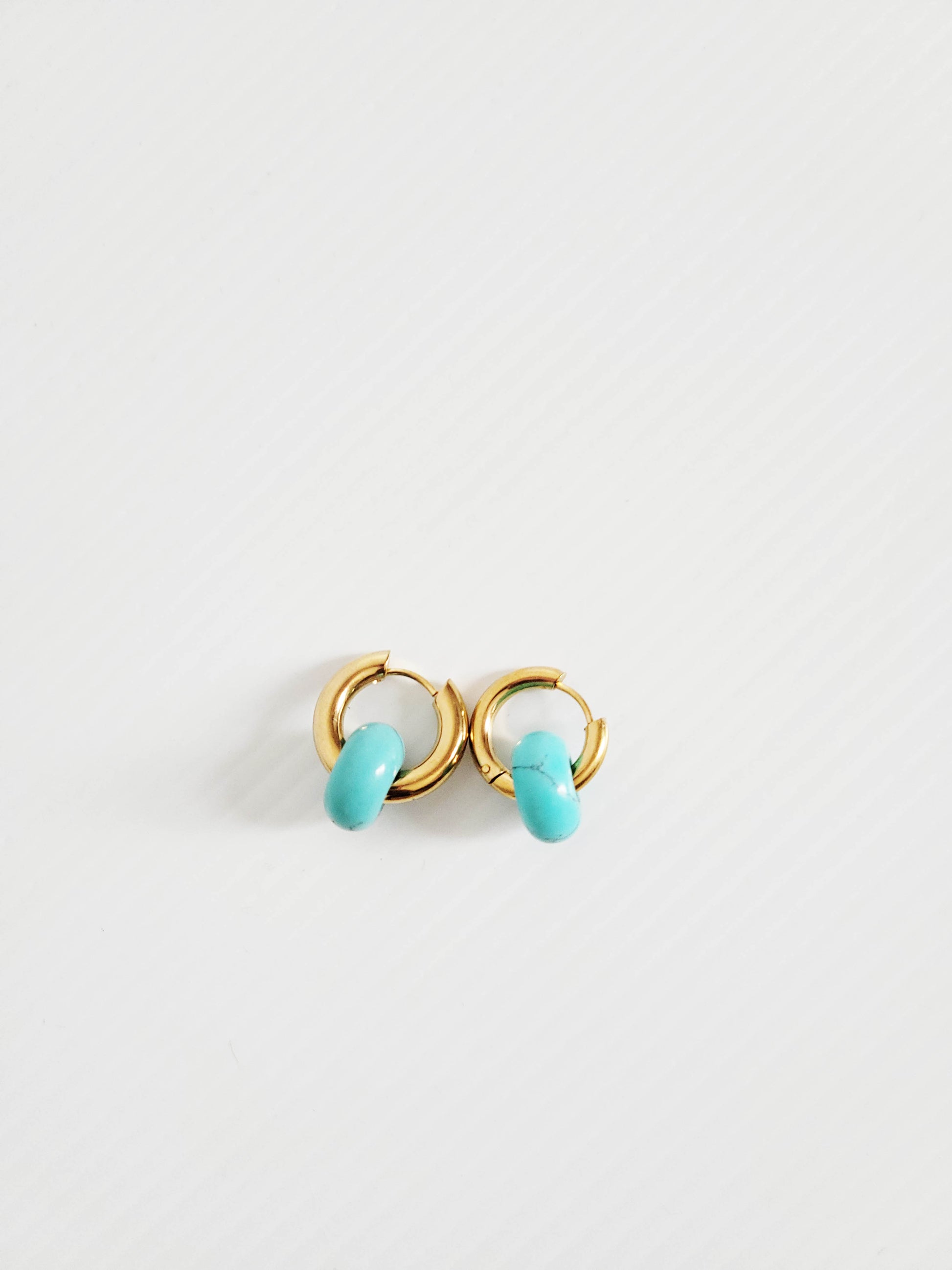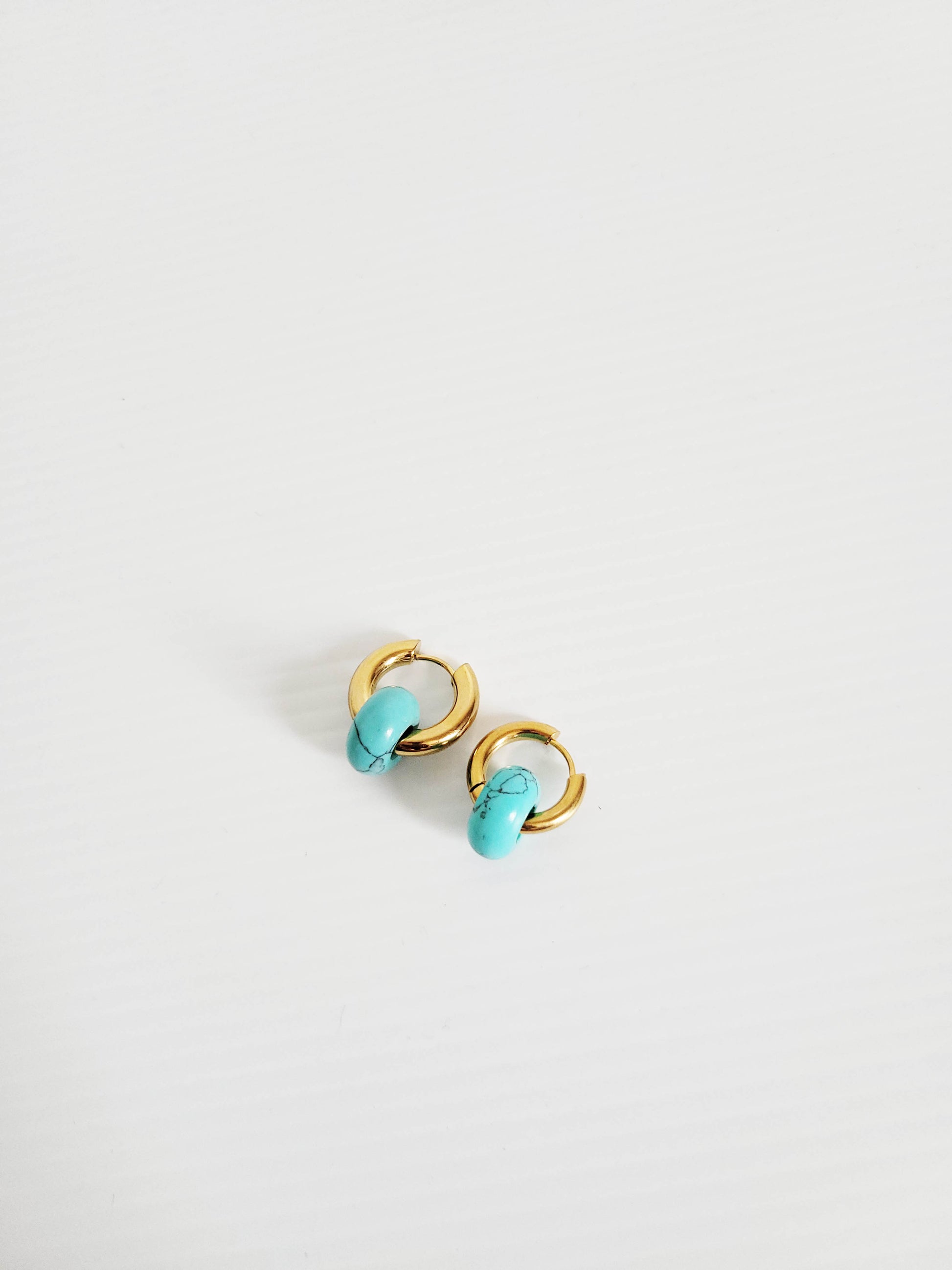 A sleek addition to your collection, this gold gemstone earring is a staple piece featuring a clicking mechanism for easy put on and removal. Adds a minimal bohemian touch.