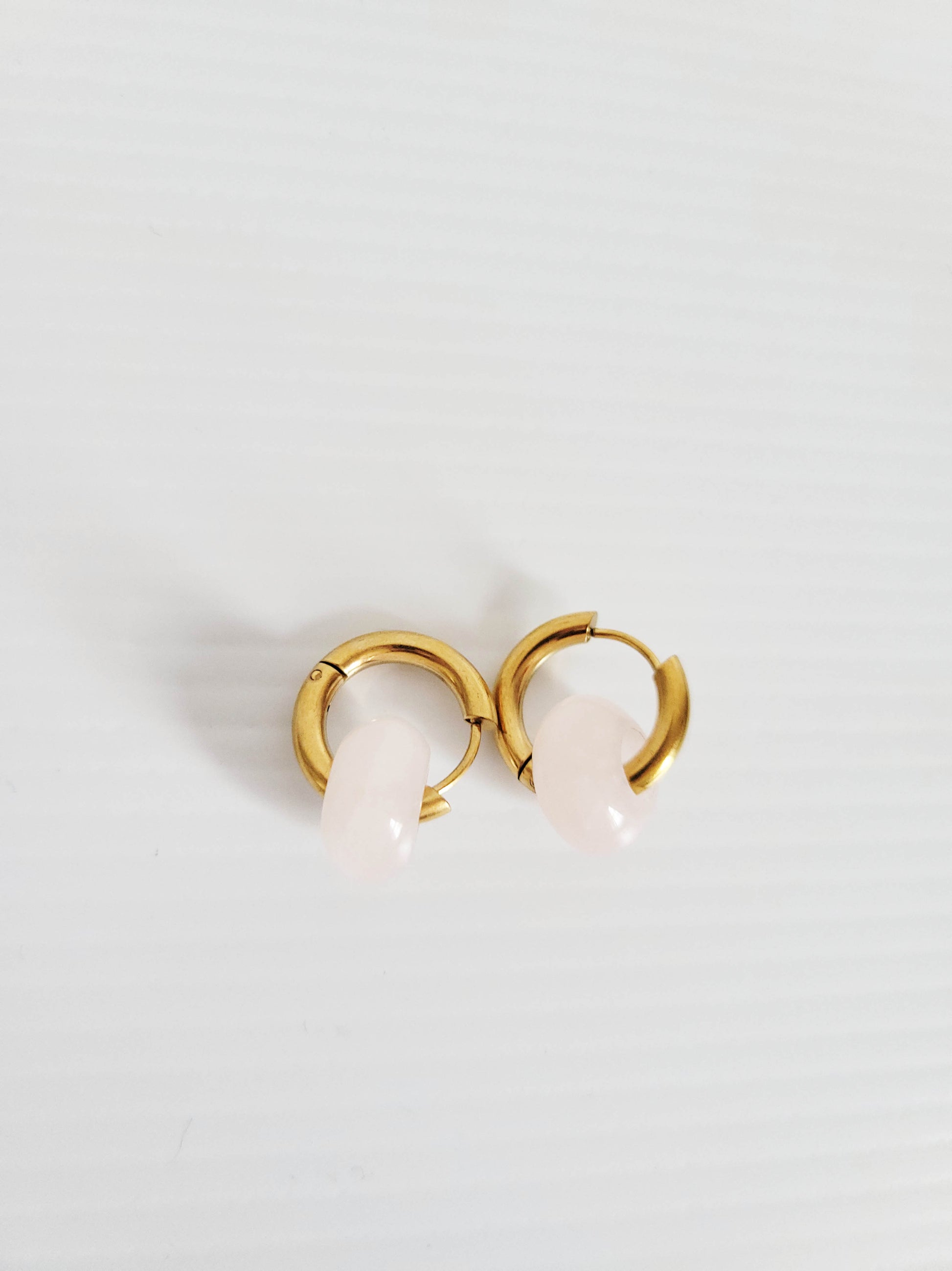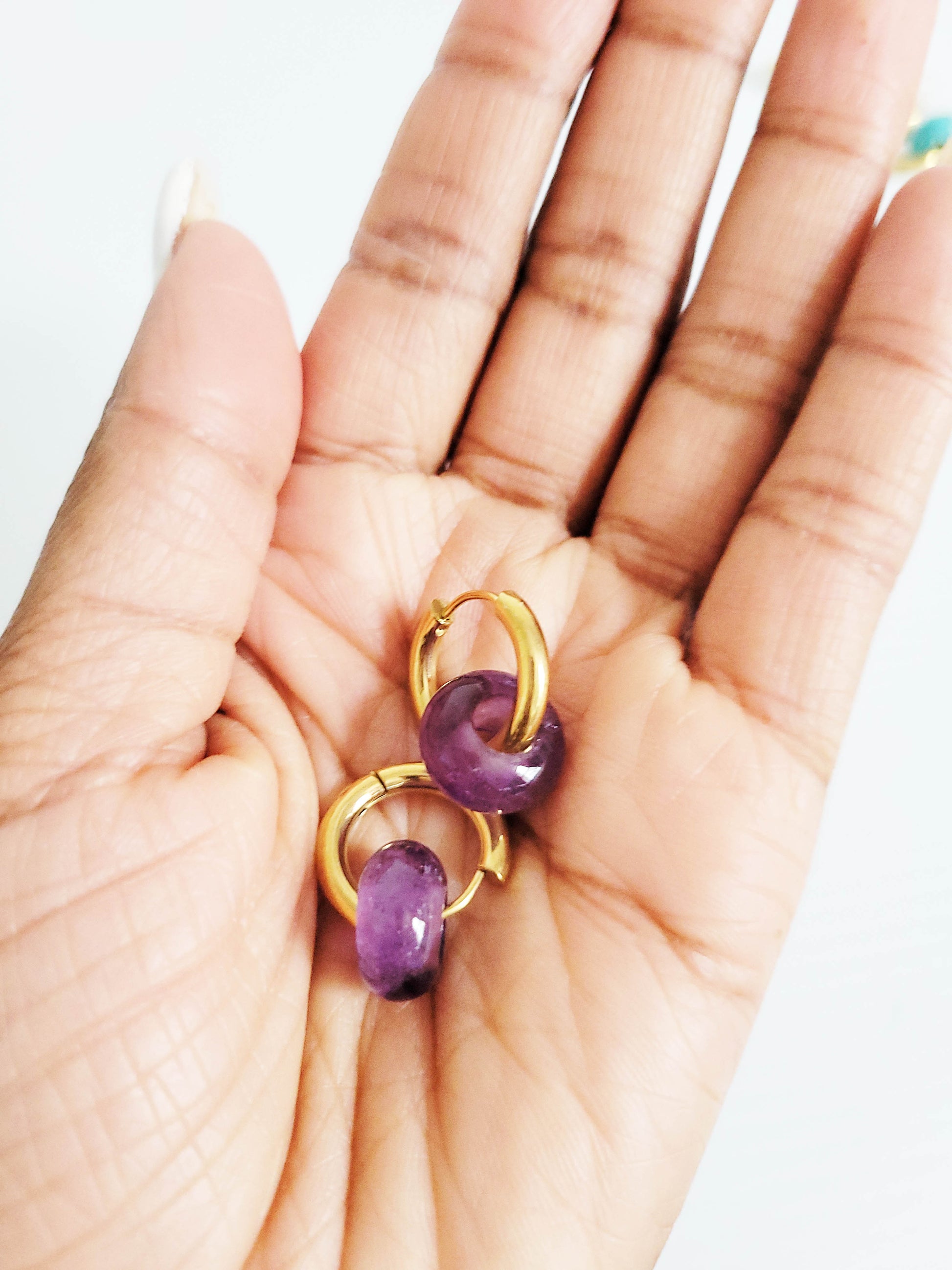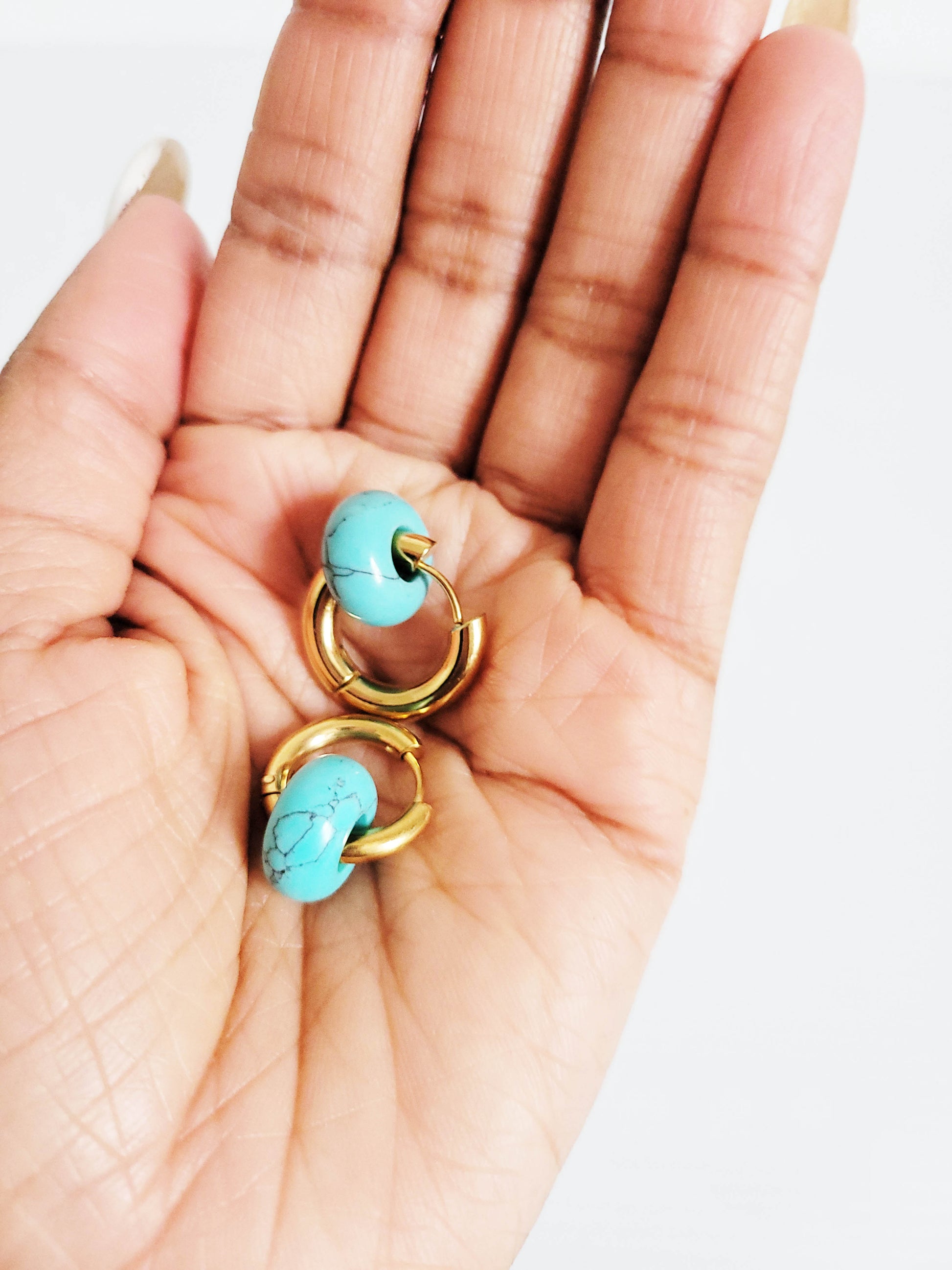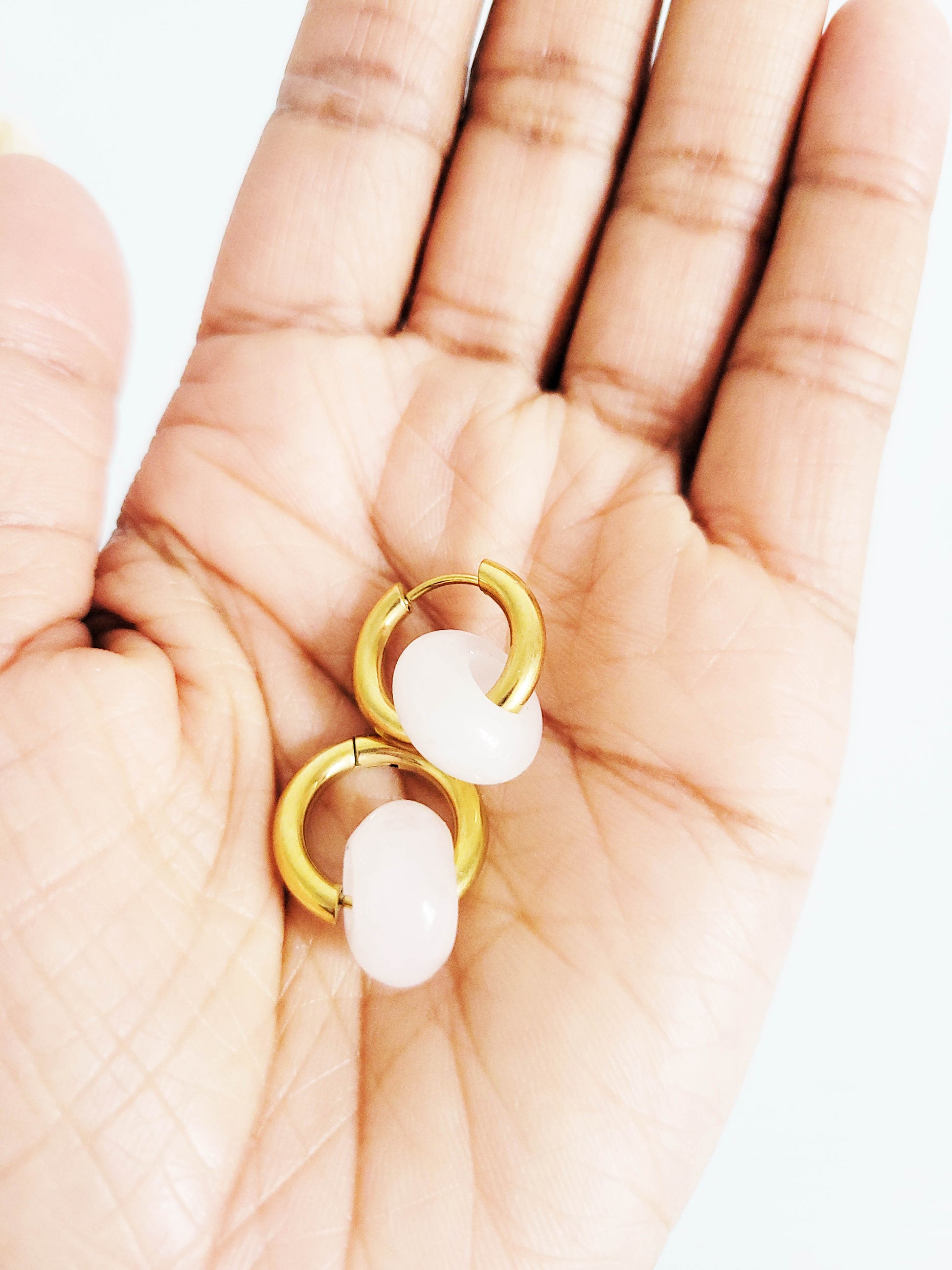 A sleek addition to your collection, this gold gemstone earring is a staple piece featuring a clicking mechanism for easy put on and removal. Adds a minimal bohemian touch.