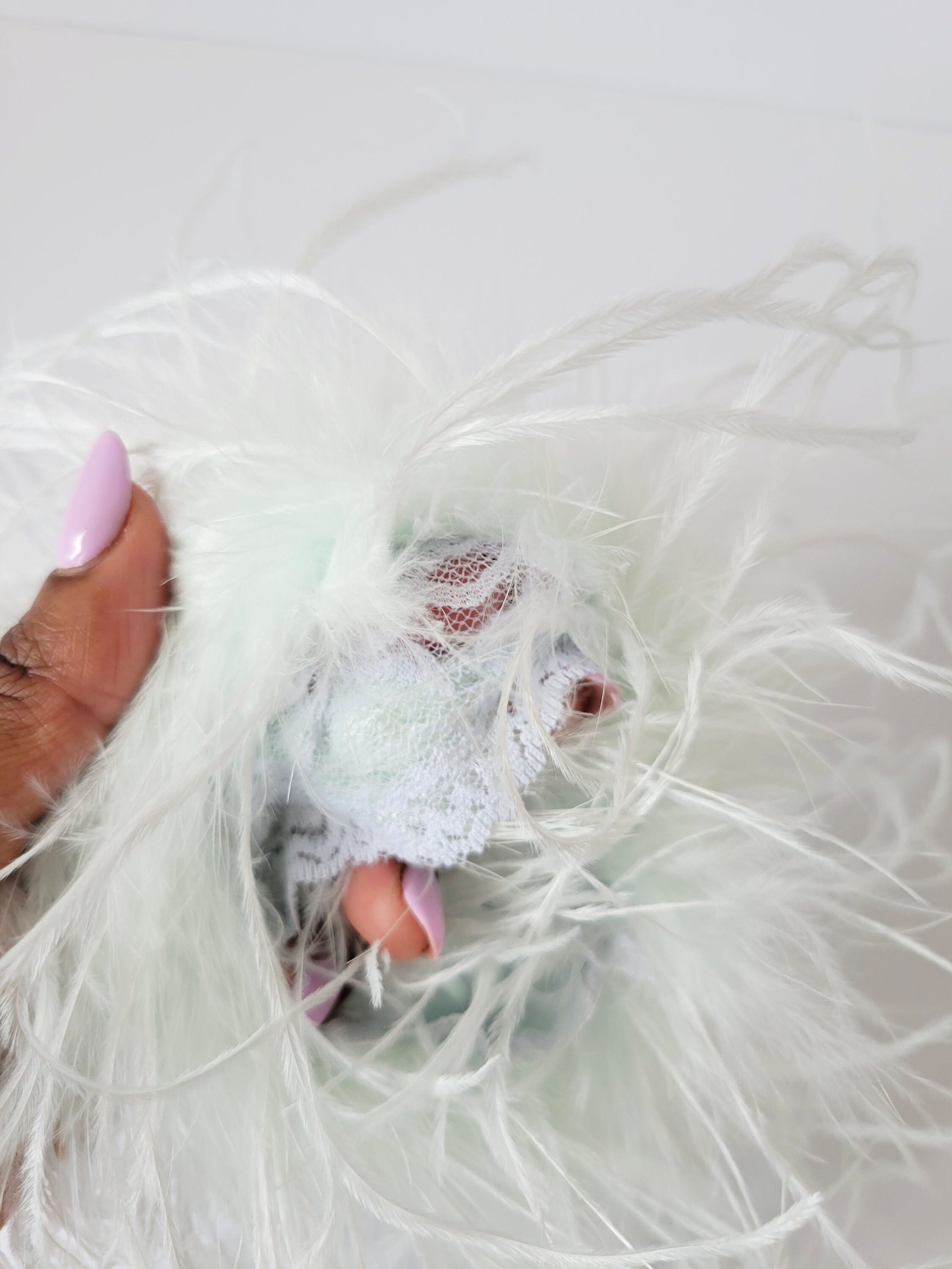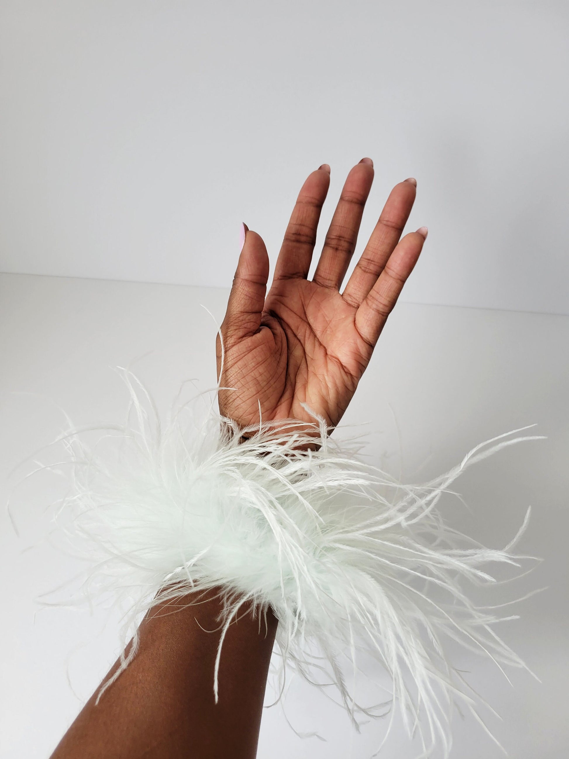 - Beautiful fluffy ostrich feather lace cuffs