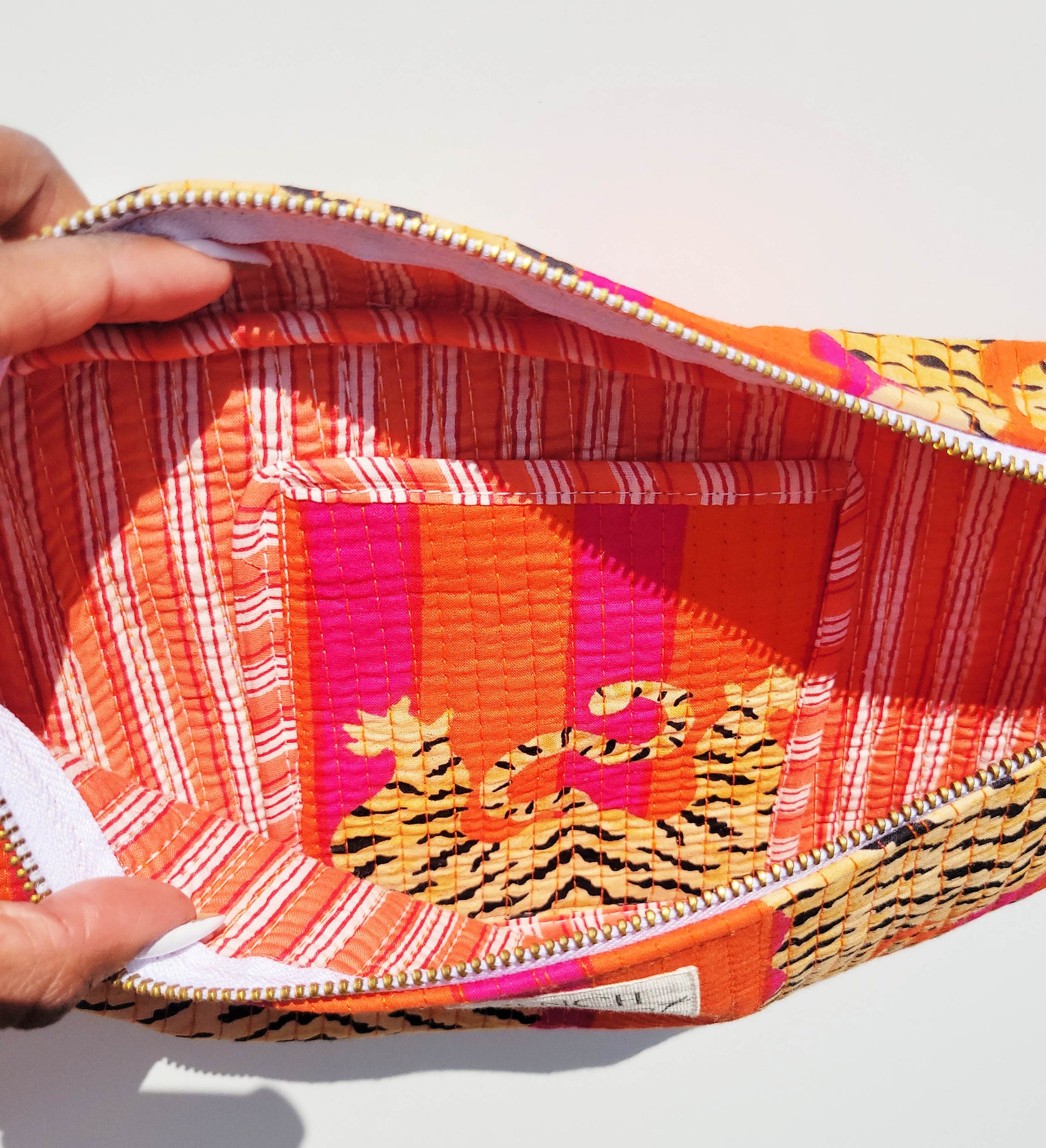 How itβs Made: Each bag is an artisanal labour of love! The fabric is block printed by hand on cottonΒ then time is spent hand filling and quilting the fabric before hand-making the bag itself. I work directlyΒ with artisans in Jaipur, India to bring these bags to life.