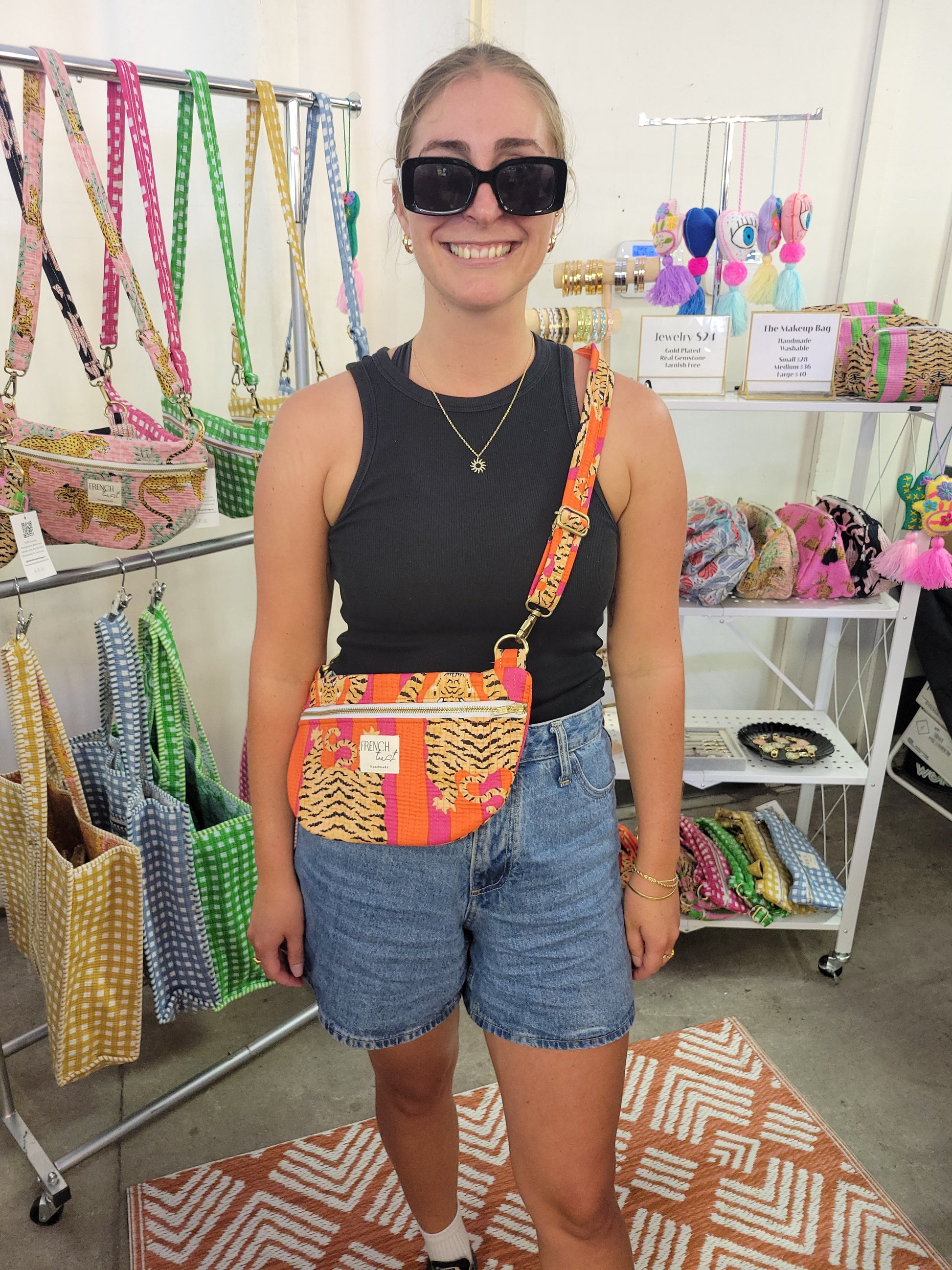 Meet The Essential Sling. This is a beautiful handmade, cotton sling bag. Each bag is roomy and structured big enough to hold a phone, wallet, sunglasses and any other daily essentials.Β