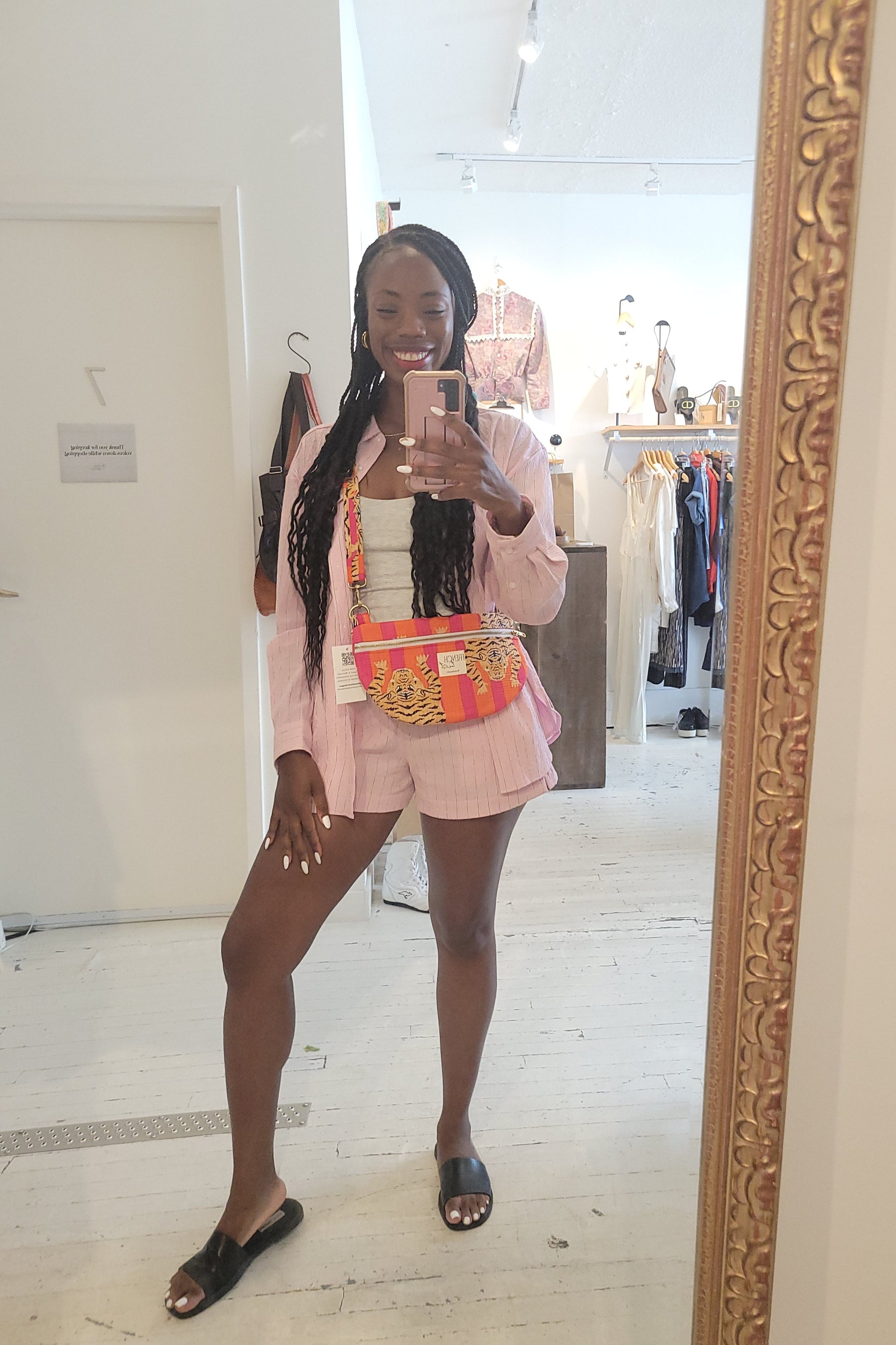 Meet The Essential Sling. This is a beautiful handmade, cotton sling bag. Each bag is roomy and structured big enough to hold a phone, wallet, sunglasses and any other daily essentials.Β