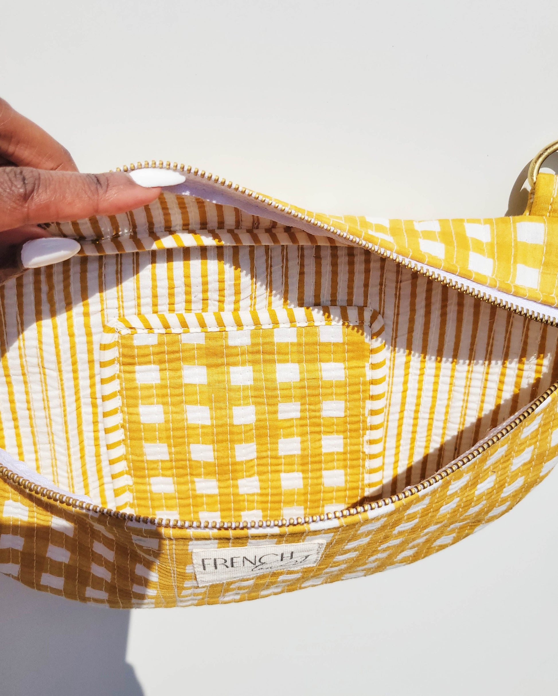 How itβs Made: Each bag is an artisanal labour of love! The fabric is block printed by hand on cottonΒ then time is spent hand filling and quilting the fabric before hand-making the bag itself. I work directlyΒ with artisans in Jaipur, India to bring these bags to life.