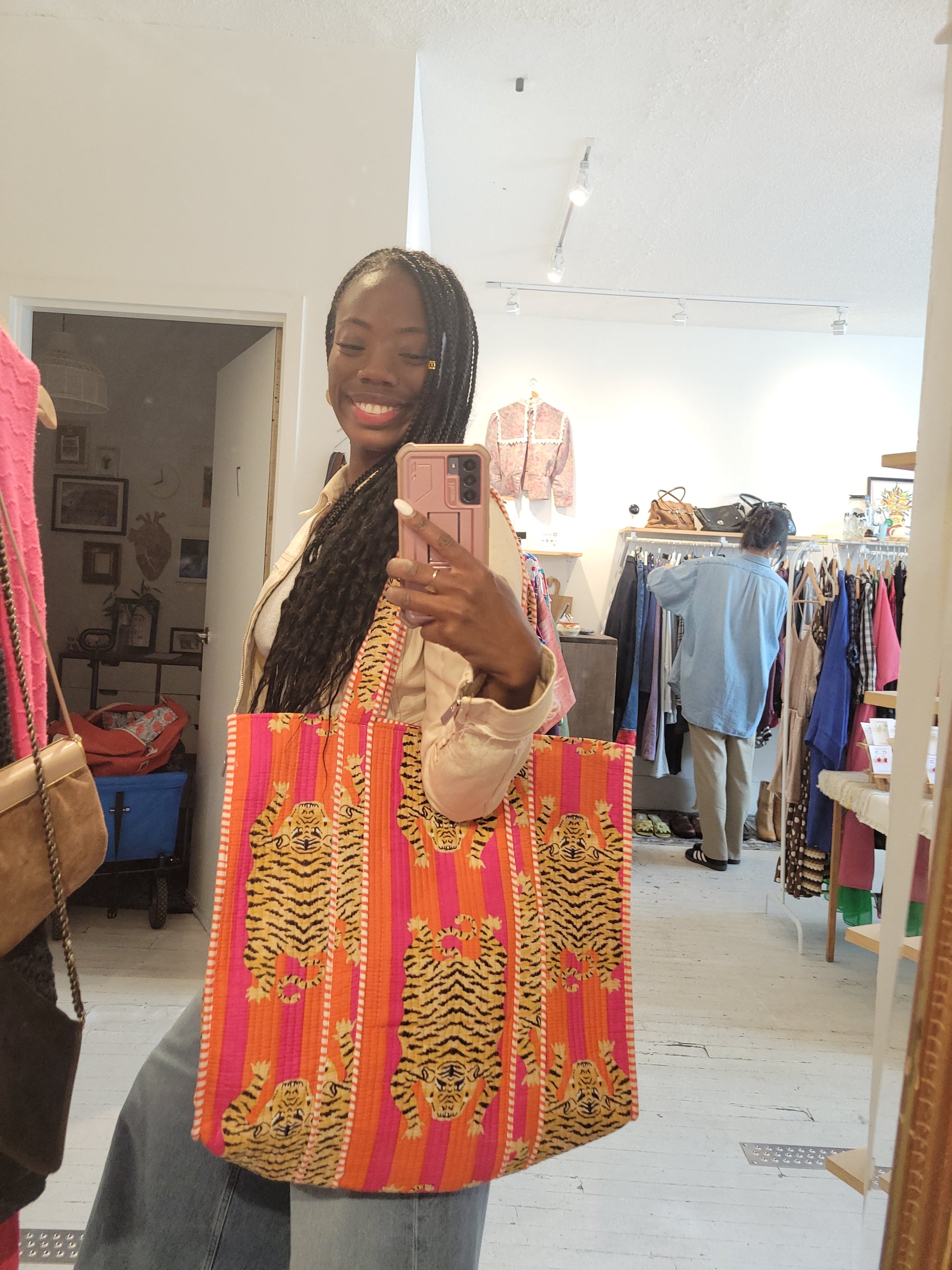 How itβs Made: Each bag is an artisanal labour of love! The fabric is block printed by hand on cottonΒ then time is spent hand filling and quilting the fabric before hand-making the bag itself. I work directlyΒ with artisans in Jaipur, India to bring these bags to life.