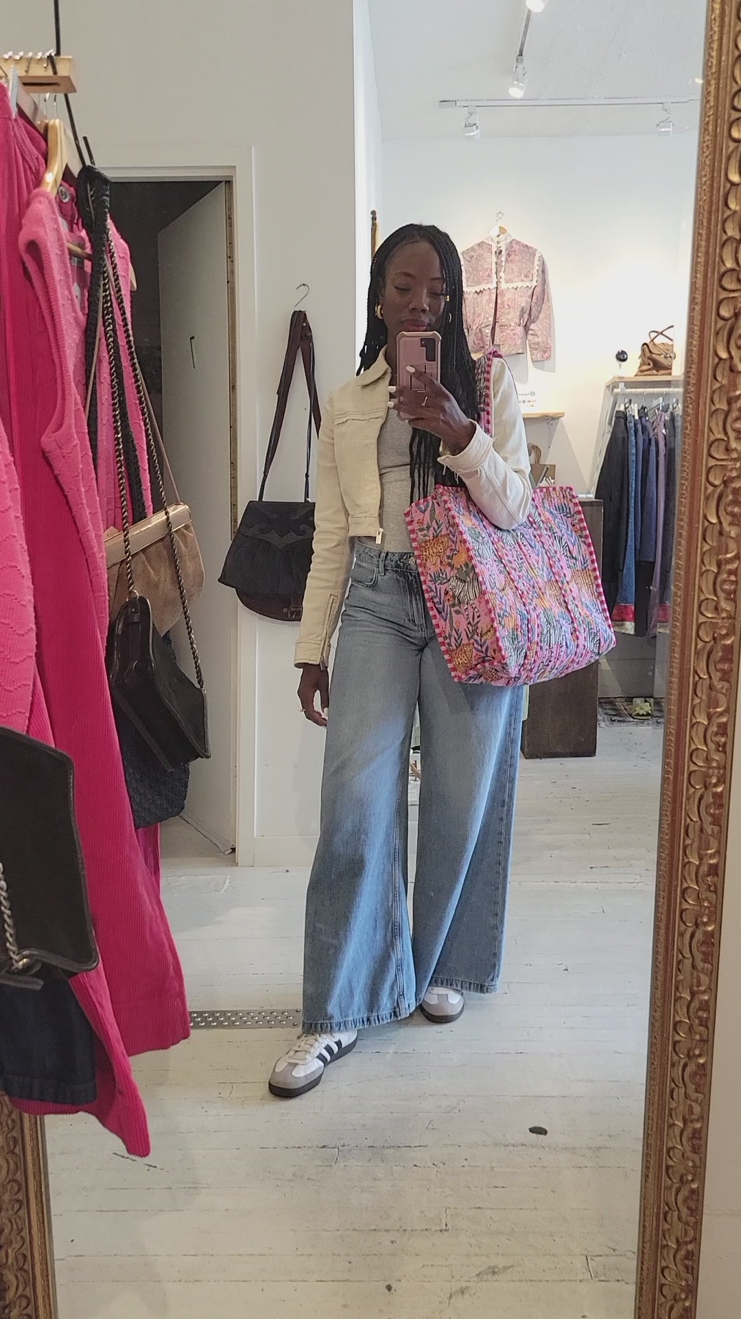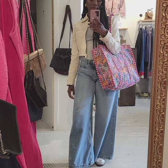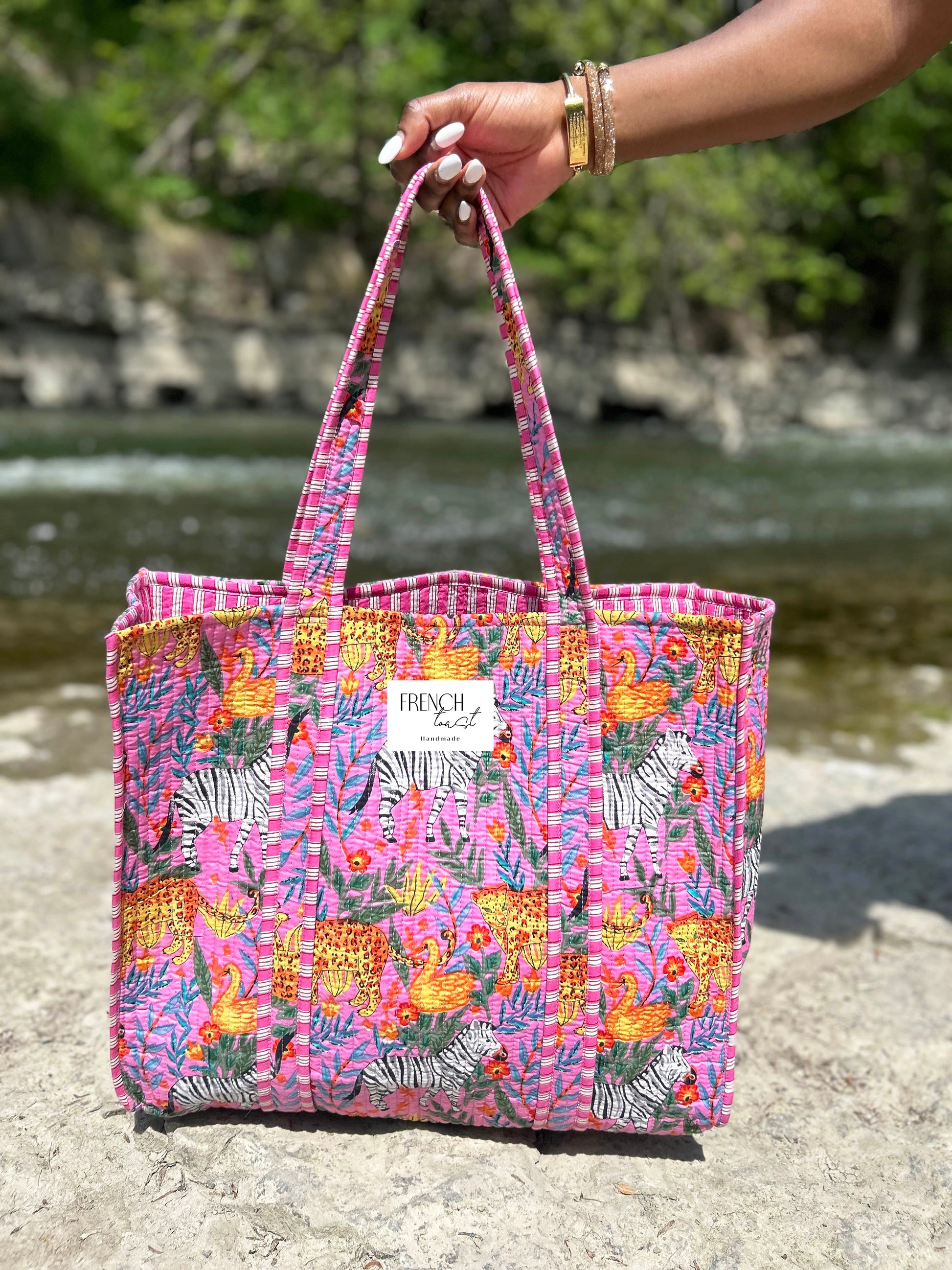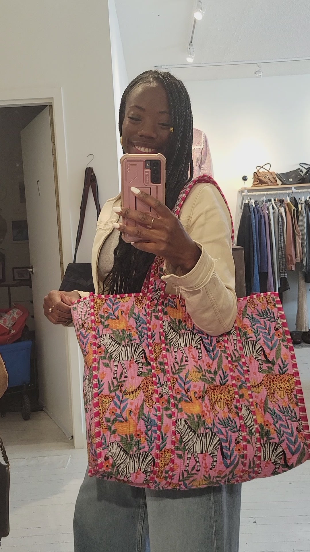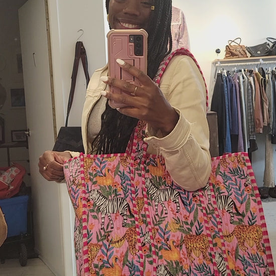 How itβs Made: Each bag is an artisanal labour of love! The fabric is block printed by hand on cottonΒ then time is spent hand filling and quilting the fabric before hand-making the bag itself. I work directlyΒ with artisans in Jaipur, India to bring these bags to life.