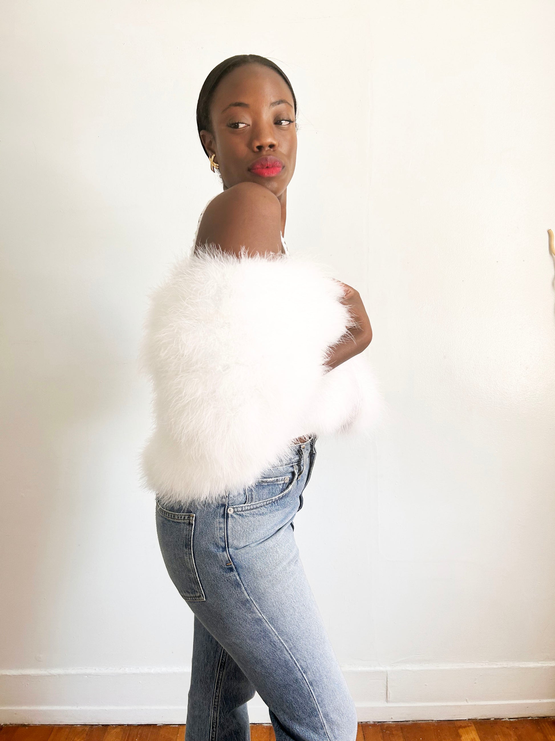 This gorgeous ostrich feather wedding stole. Luxurious soft feathers and super lightweight and adds a touch of Hollywood glam to your outfit, wedding or other special occasion. Each piece is made to order vintage style with pockets.